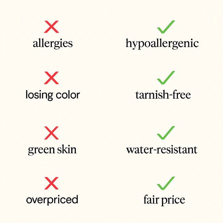 Waterproof & tarnish-resistant design made with hypoallergenic materials. Each piece is crafted to be worn daily while maintaining its brilliance for years to come.